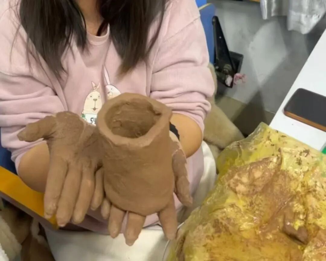 第一社区710班李家雪:陶艺活动是一次心灵与泥土的对话,亲手塑造的作品让我感受到创造的魅力,享受从泥泞到成品的蜕变过程,无比满足。