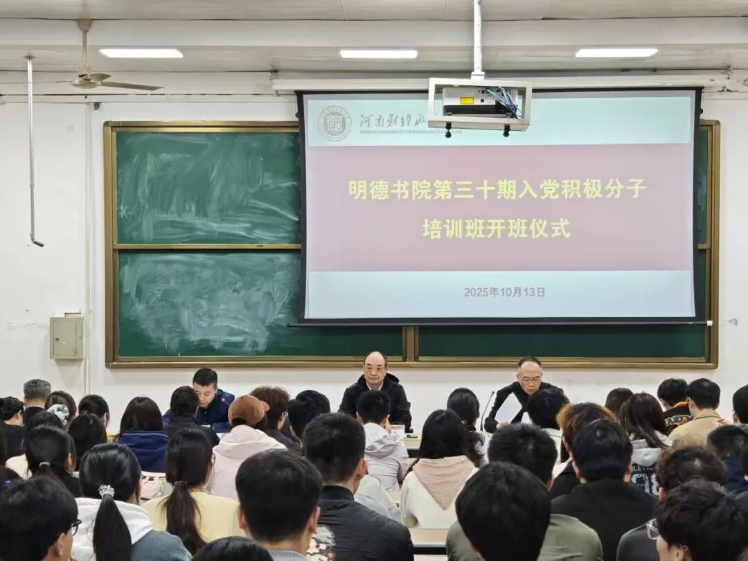 为推动书院党员发展工作规范有序开展,从思想上政治上严格把好党员发展质量关,10月13日,明德书院党委举行第三十期入党积极分子培训班开班仪式。书院党委书记王廷伟、党委副书记何海涛、王帅以及全体辅导员出席仪式。仪式由王帅主持。