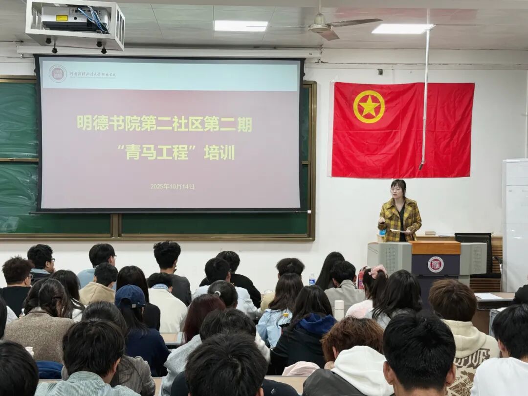 为加强学生干部队伍建设,提升团学骨干的理论素养与实践能力,明德书院第二社区团委于2025年10月14日下午成功举办第二期“青马工程”第一次培训会。