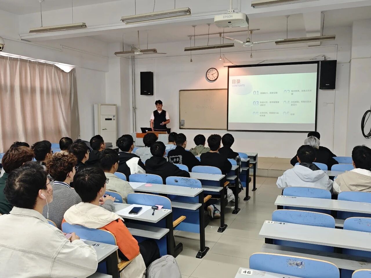 其中最暖心的环节是“温暖一句话”爱心便签活动。5分钟里,大家执笔抒怀,把对脱贫地区小伙伴的鼓励与祝福写在便签上:“愿你以努力为翼,飞向更远的天空”“山海相隔,心意相连,我们一起加油”……随后,团支书随机抽取3-5张便签分享,字里行间的温暖在现场流转,不少便签还被贴在黑板上,定格成最动人的青春印记。