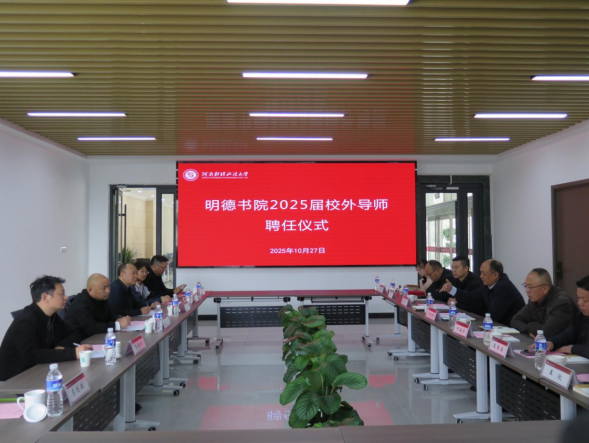 2025年10月27日下午,明德书院举行2025届校外导师聘任仪式,旨在搭建书院与社会各界的合作桥梁,为学生提供多元化、高水平的实践指导与成长支持。书院党委书记王廷伟、党委副书记何海涛、王帅等领导班子成员,以及来自文化、教育、企业等领域的多位校外导师出席仪式,仪式由党委副书记王帅主持。