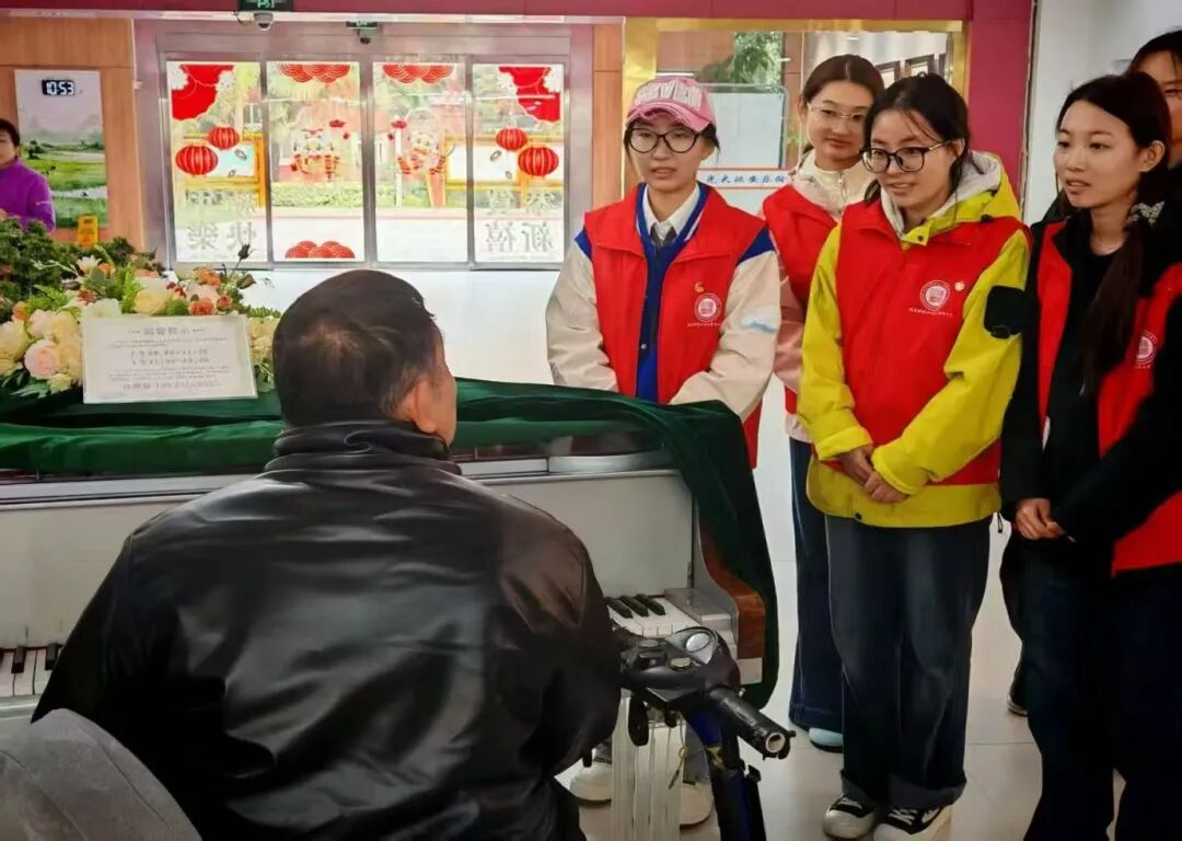 随后,一场别开生面的文艺活动在敬老院大厅拉开帷幕。在国旗与党旗的映照下,大家齐声高歌,以嘹亮的歌声抒发对生活的热爱、对祖国的深情,也让尊老敬老的传统美德随旋律流淌心间。志愿者与老人们轮番献上精彩表演,掌声不断,暖意融融,让老人们真切感受到来自社会的关怀与温暖。