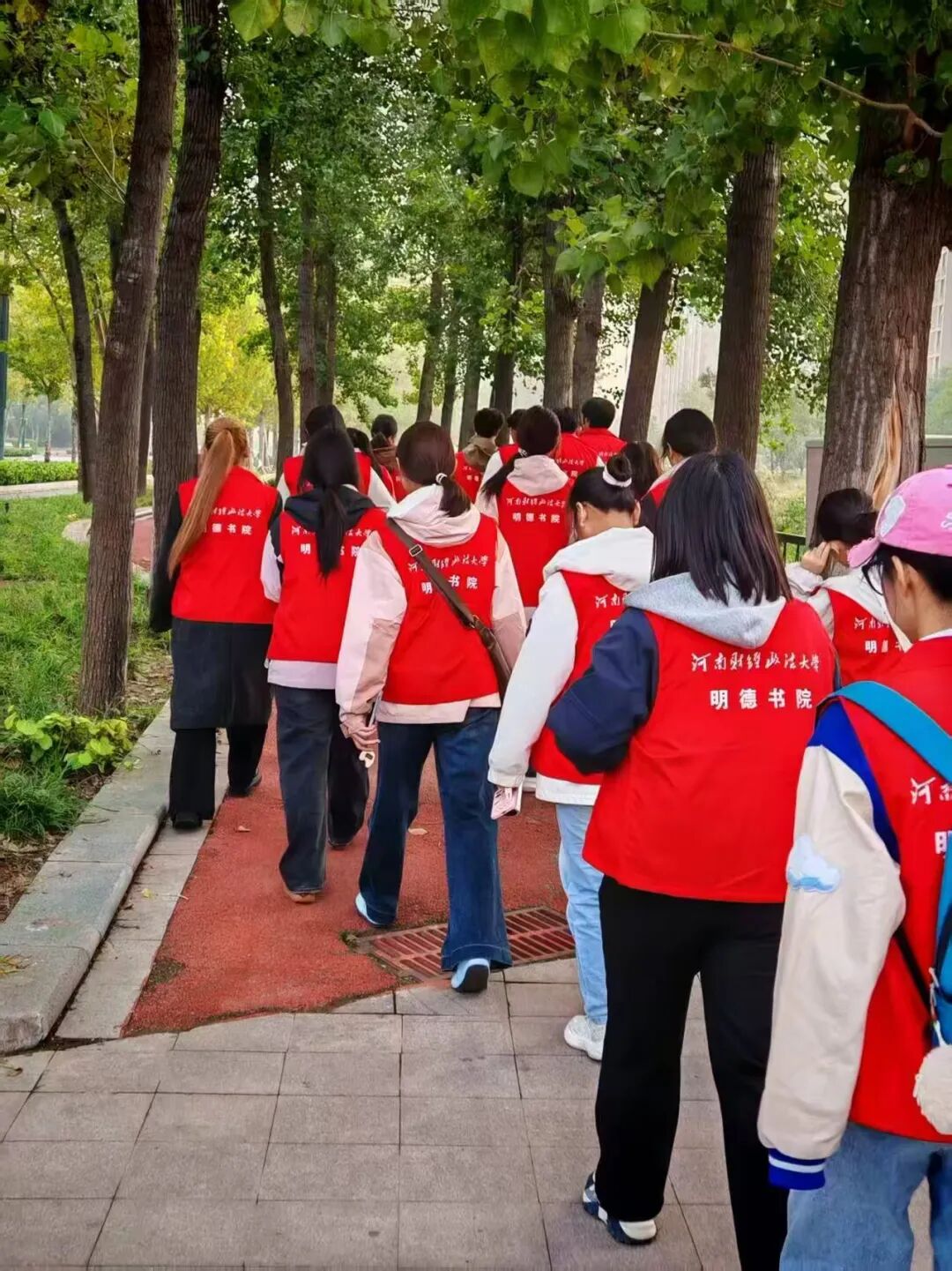 为弘扬尊老敬老的传统美德,践行志愿服务精神,2025年10月26日,河南财经政法大学明德书院组织志愿者前往河南省老年公寓开展志愿活动,为老人们送去关怀与温暖。活动当天,志愿者们身着统一的红色志愿马甲,在学校“博洽通达 弘毅致远”的校训背景前集结,以饱满的热情开启了本次爱心之旅。